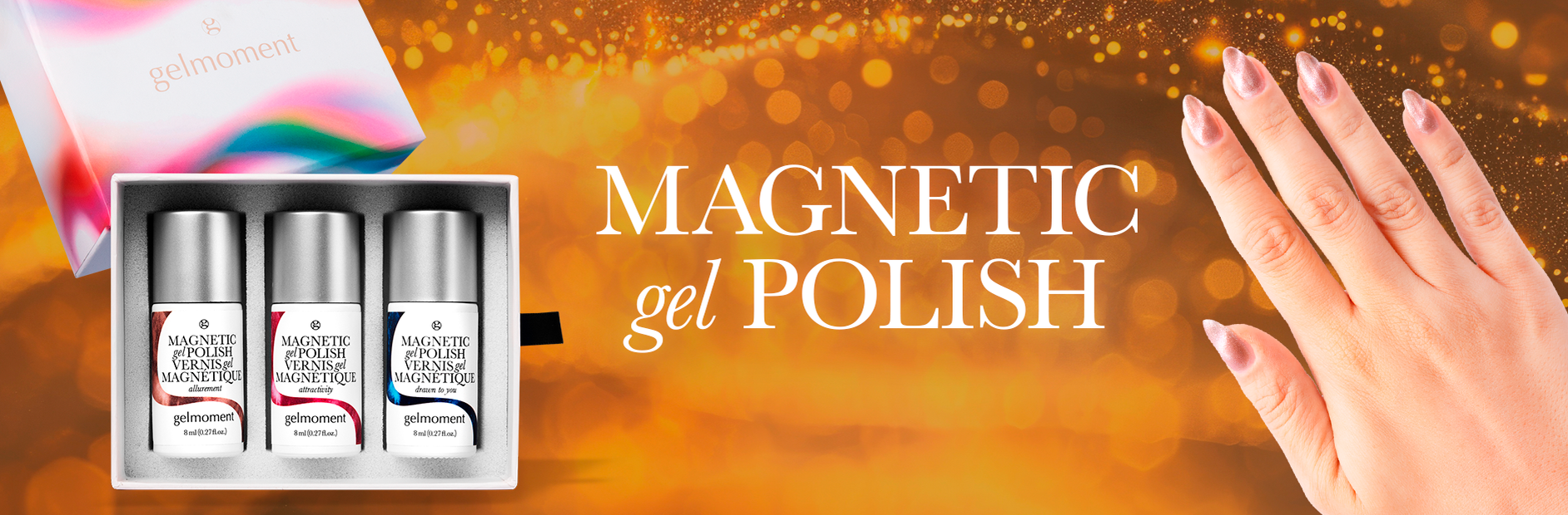 Gelmoment magnetic gel polish adds shimmering depths and dazzling dimensions to your manicure with intensely eye-catching results.